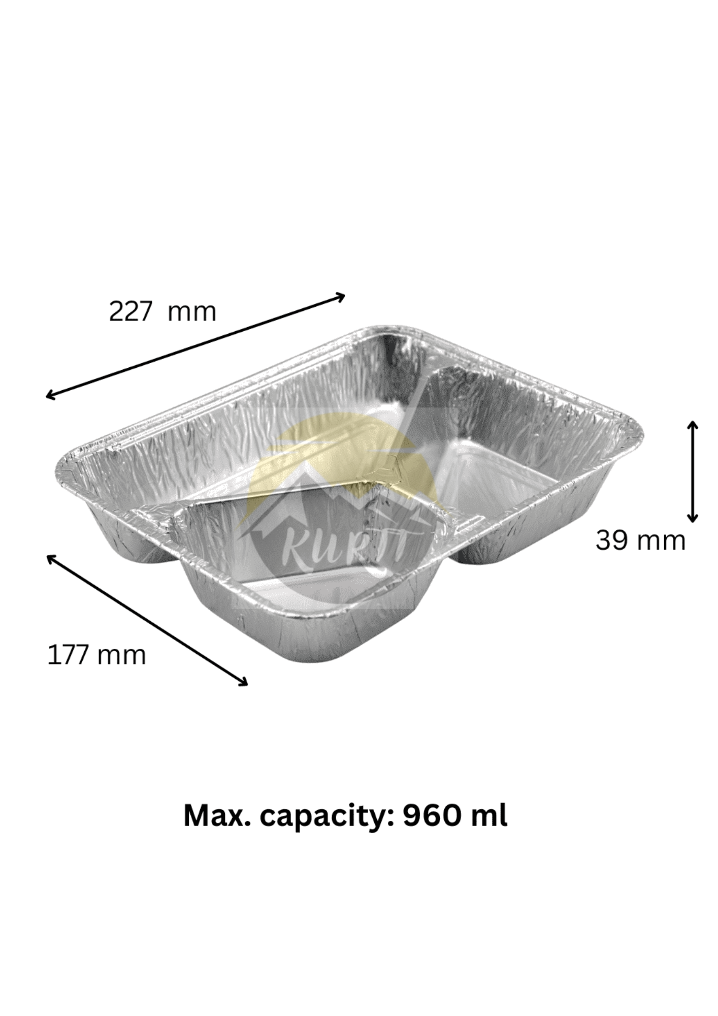 Aluschale 960G 3-geteilt mit Aludeckel - 100 Stück