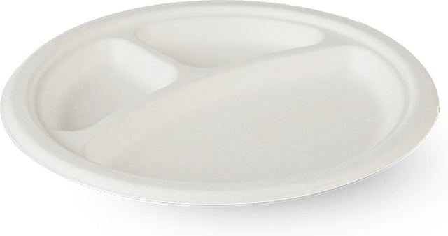 3-Fächer-Teller aus Zuckerrohr - 125 Stück