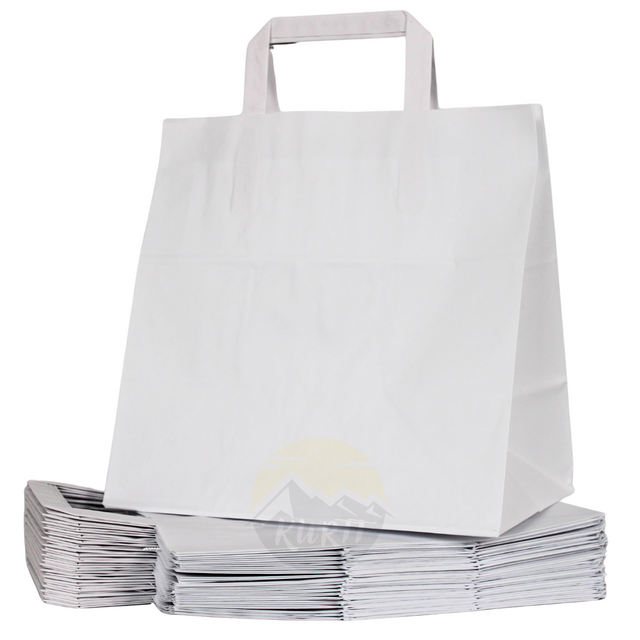 Paper bags with flat handle made of sturdy kraft paper with a folded bottom and a side fold. This means that these bags have a large capacity and a high carrying capacity. These multifunctional paper bags can be used for many purposes. And these bags are recyclable, so they are not harmful to the environment.