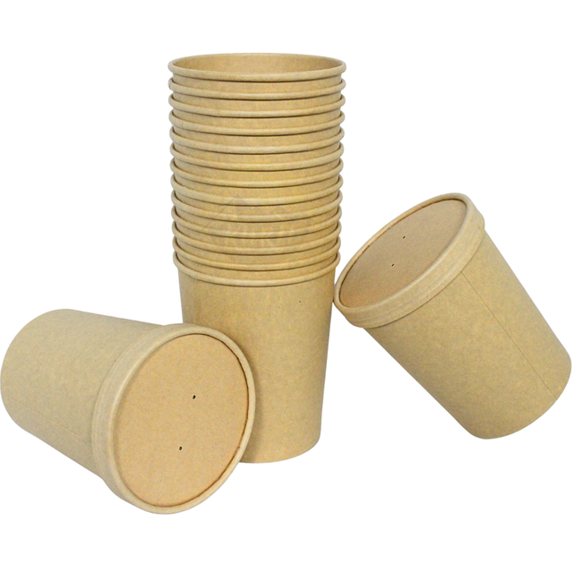 This brown kraft paper soup cup is a convenient takeaway container with an eco-friendly design. It can be used to transport fresh soup, but is also perfect for on-the-go consumption. Of course, this cup is also suitable for other hot or cold contents, such as sauce, noodles, ice cream, stews, chili con carne, and drinks.