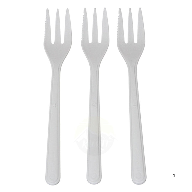 Weiße Snackgabeln mit scharfer Schneide. Wiederverwendbare Gabeln, ideal für Pommes frites, Snacks oder kleine Häppchen.
